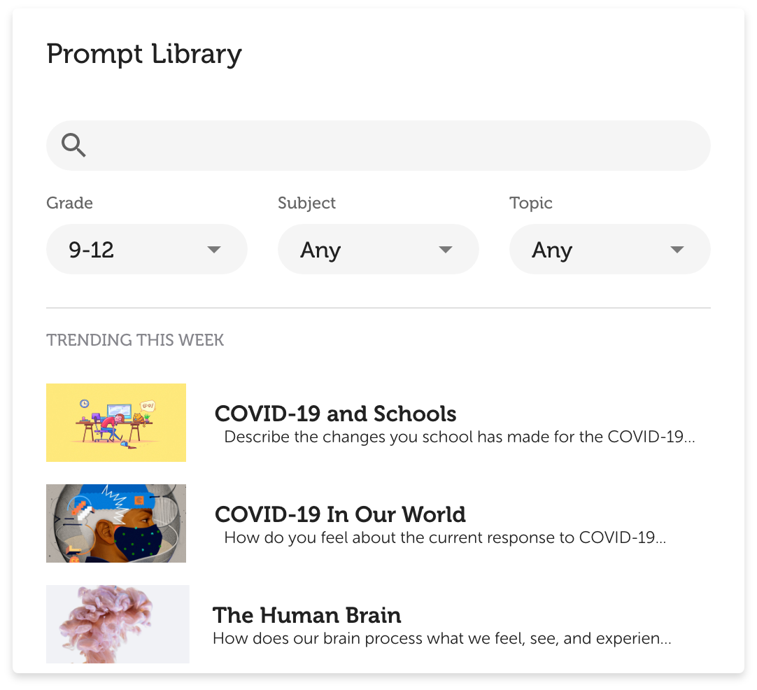 Together, we’re perfecting a writing prompt library that spans multiple subjects. We’re
